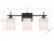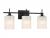 Brighten up your bath easily and beautifully with this 3-light bath bar, which showcases shades of strie glass featuring dazzling swirls that draw the eye, soften the glow and work beautifully with the Matte Black finish. It is 9.75" in height, 22" in width and extends 6.5" from the wall. Uses three standard size bulbs of up to 60 watts per bulb. Bulbs not included.