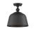 From Savoy House, this Berg 1-light ceiling semi-flush mount is a perfect blend of industrial style and traditional allure. It showcases an oversized metal shade that is finished in matte black, both inside and out, for a bright and focused glow. Above the shade, hardware details recall the curves of an elegant candlestick. Berg is perfect for times when you would like a more directed beam of light, such as in a small entryway or a kitchen. This fixture is 12" in width and 12" in height. Uses one standard size light bulb of up to 60 watts (not included).