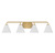 Get a warm and welcoming glow at the vanity with the Savoy House Blair 4-light bath light. Conical shades of white strie glass feature eye-catching wisps and swirls that add a touch of dimension and intrigue. The glass contrasts nicely with the versatile Warm Brass finish. Blair is 8" in height, 35" in width and extends 8.5" from the wall. Uses four standard size bulbs of up to 60 watts per bulb. Bulbs not included. This bath light is damp area rated and may be installed with the glass facing up or down.
