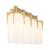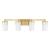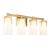 Bring fashionable, vintage-inspired lighting home with the Savoy House Caldwell 4-light bath bar. Etched white opal glass shades are held in place with dramatic jewelry-like prongs that are finished in Warm Brass. Caldwell is 8.5" in height, 32" in width and extends 5.5" from the wall. It uses four candelabra size bulbs of up to 60 watts per bulb. Bulbs not included. This bath light is damp area rated and must be installed as shown.