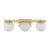 The Savoy House Darien is a 3-light bath bar with fabulously chilly appeal. A minimal frame is finished in bold Warm Brass and holds three orbs of Ice Glass, adding sub-zero cool with tons of frosty texture. Darien is 7.25" in height, 25" in width and extends 7.25" from the wall. Uses three candelabra size bulbs of up to 60 watts per bulb. Bulbs not included. This bath bar is damp area rated.