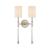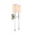 Slim and stylish! The Savoy House Fremont sconce packs a whole lot of textural interest into a slender silhouette. The round wall plate and light arms have double ring detailing and a satin nickel finish. The long tail of these arms are made of clear glass with another double ring above the glass ball finials. The cylindrical shades are a lovely, soft white fabric. Altogether, it’s an elegant fixture that is a pleasure to have in your home. Two 60W candelabra size bulbs fit within the shades of this 13" wide and 21" high sconce. It’s the perfect size to place alone or in groups along the walls of your dining room, kitchen, living room, entryway, bedroom, bathroom, office, family room, media room or hallway.