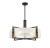 Swirling, mesmerizing strie piastra glass surrounds the lights within the Savoy House Hayward 5-light pendant. The matte black frame showcases warm brass accents for another dimension of style. Hayward is 28" in width and has an adjustable height ranging from 23" to 69". It uses five standard size bulbs of up to 60 watts per bulb. Comes with four 12" downrods and one 6" downrod, plus 80" of cord.