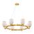 The Savoy House Isla Blanca 8-light chandelier was designed by Breegan Jane, an award-winning interior designer and TV host. Breegan believes that luxe design is in the details, like the beautifully textured translucent porcelain shades that take the spotlight here. When the lights are on, the shades create a flattering glow. When the lights are off, they add an eye-catching touch to any room. The Warm Brass finish amplifies the glamour. Isla Blanca is 26" in height and 40" in width. Uses eight standard size bulbs of up to 60 watts per bulb. Bulbs not included.