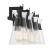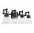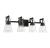 Conical shades of clear glass recall Italian midcentury modern lighting designs in the stylish Lakewood 4-light bath vanity light from Savoy House. The glass is suspended from angular reimaginings of shepherd's hooks and the fixture is finished in bold matte black. Lakewood is 9.5" in height, 32" in width and extends 6.5" from the wall. It uses four standard size bulbs with a max of 60 watts per bulb. Damp area rated.