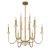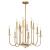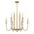 The Savoy House Oakhurst 12-light chandelier expertly blends Art Deco boldness with an inviting organic touch. Dramatically curved arms are topped with candle cups crafted from natural travertine. This beautiful stone features small holes and gaps, an example of the perfect imperfection of nature. An Antique Gold finish amps up the texture and glamour. Oakhurst is 30" in width and has an adjustable height ranging from 25" to 79". Comes with four 12" downrods and one 6" downrod. Uses twelve candelabra size bulbs of up to 60 watts per bulb. Bulbs not included.