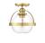 This Savoy House Pendleton 1-light ceiling semi-flush mount is a smart way to pep up the illumination and style in any room, including small spaces that might otherwise have lackluster light. It showcases a large orb of clear glass that is open at the bottom, allowing for more direct light and making it easy to replace the bulb. Metal bands bisect the shade and help hold it to the fixture's base. Try using this fixture in laundry rooms, closets, hallways or entryways, though truly the possibilities are endless. Finished in warm brass. This fixture is 9.38" wide and 9.75" tall. Uses a standard size bulb of up to 60 watts (not included).