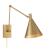 The Savoy House Pharos 1-light sconce is part of Moderne by Breegan Jane, bringing her signature approachable modern luxury style to your home. Breegan loves how metallics elevate a design, as exemplified by this opaque metal shade finished entirely in champagne-toned Noble Brass. The shade can be adjusted, providing different angles of light to meet your needs, and the arm is adjustable as well. This sconce also features a convenient on-off switch and can be plugged in or hardwired. Pharos is 18.5" in height and 8" in width. Its adjustable arm can extend from 10" to 32". Uses one candelabra size bulb of up to 60 watts. The bulb is not included. This sconce is damp area rated.