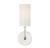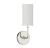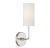 With the Savoy House Powell 1-light sconce, get simply chic lighting that will add a touch of brightness in any room. Use Powell solo or in groupings to meet any accent lighting need throughout the house! The tall cylindrical shade of white fabric pairs nicely with the effortlessly curving arm and polished nickel finish. Powell is 15" in height, 5" in width and extends 5.5" from the wall. It uses one candelabra size bulb of up to 60 watts. Damp area rated.