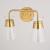 Indulge in mid-century modern charm with the Harper 2-Light Vanity. Its sleek, bowtie-inspired design and natural brass finish bring a touch of warmth and sophistication to your bathroom or perhaps even your kitchen. The clear glass shade beautifully showcases your choice of bulb, creating a captivating focal point.