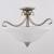 The soft traditional lines of the Monrovia collection allow you to combine styles within your home without compromising on design. The brushed nickel and frosted white glass add a certain level of sophistication and elegance that is rare to achieve. Update your look with a hint of class. This fixture is part of a collection with coordinating pieces to decorate any room in the house. This versatile fixture can be installed two ways; mount as a semi-flush mount ceiling fixture or use the chain to mount as a pendant.