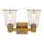 Designed by Chapman & Myers, the Alessa two light wall sconce in polished nickel is a Simple glass bathroom collection with rectangular metal arms and tapered clear glass shades. The conical clear glass shades replicate and frame the shape of the inner filament bulb. Each shade is supported by a rectangular metal arm and is capped with a thin metal rim.
