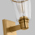 The Alessa one light wall sconce in burnished brass designed by Chapman & Myers is a Simple glass bathroom collection with rectangular metal arms and tapered clear glass shades. The conical clear glass shades replicate and frame the shape of the inner filament bulb. Each shade is supported by a rectangular metal arm and is capped with a thin metal rim