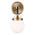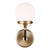 The Cafe one light vanity fixture in satin brass offers shadow-free lighting in your powder room, spa, or master bath room. Â Handsome two-tone finish and white glass globe shades.
