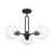The Codyn three light semi flush fixture in Midnight Black is a contemporary take on a classic mid-century design. Clear glass shades with open-ended spheres accent the elongated keyhole strap detail, for a clean look. This minimalist collection relies on subtle details to create visual interest