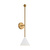 The Cosmo series by AERIN for Visual Comfort Studio Collection plays with asymmetry, combining milk glass globes that emit a soft glow, and metal cone shades, which focus light above and below.