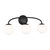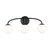 The Galassia three light wall sconce by AERIN in midnight black perfectly balances a glass globe and curving teardrop frame, giving it a contemporary look. The white glass casts a soft, welcoming glow over a space. This piece works particularly well in a hallway.