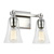 The Sean Lavin Monterro two light vanity fixture in satin nickel offers shadow-free lighting in your powder room, spa, or master bath room. Monterro features beautiful tapered glass shades and exquisite cast details, including a cast backplate, cast ring, and hook hardware that elegantly supports the shades. The Chrome version is available with two glass options; either White Opal Etched glass or Clear Seeded glass, while the Burnished Brass, Satin Nickel finish is available in Clear Seeded glass only.