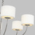 Inspired by kate spade whimsical geometry and playful lines, Sawyer has a striking silhouette with graphically taped shades. The Sawyer medium chandelier by kate spade New York in polished nickel is a wide playful chandelier with arched lines and wide, graphically taped shades. This simple and graphic chandelier would be great over a dining table or nook, as well as in a living room scenario.