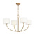 Inspired by kate spade whimsical geometry and playful lines, Sawyer has a striking silhouette with graphically taped shades. The Sawyer small chandelier by kate spade New York in burnished brass is a wide playful chandelier with arched lines and wide, graphically taped shades. This simple and graphic chandelier would be great over a dining table or nook, as well as in a living room scenario.