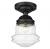 Give your space a modern farmhouse feel or restoration aesthetic with this single light flush mount, designed with a sleek contoured silhouette and a rustic matte black finish that creates a warm metallic touch to the space. A perfect addition to a powder room or compact space, this Mid-Century Modern-inspired flush mount also offers an artisan quality with a clear seedy glass globe that presents an old-world charm and texture. Mount this transitional flush mount within a sophisticated yet rustic country setting, elevating the interior with contrasted luxe materials.