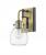 Classic transitional fare helps illuminate a custom space as it adds a sleek, sophisticated vibe. This matte black and olde brass finish wall sconce offers a clear linear silhouette with a romantic round clear glass shade.