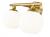 Infuse modern style in an updated custom bath space with this two-light vanity light from the Neoma collection. Symmetry and a hint of festive retro influence blend to add an outspoken design aesthetic featuring side-by-side opal etched glass globe shades affixed to a minimalist frame made of delectable modern gold finish steel. This contemporary vanity light transforms a master ensuite or guest bath into a haven for style.