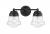 Charming, festive style goes light as it lights up a bath space with this two-light vanity from the Vaughn collection. Illuminate a compact vanity with a themed fixture borrowing from nautical and industrial, formed of bold matte black finish steel and featuring unique schoolhouse clear seedy glass shades. This light becomes a central focus in a transitional or modern bathroom.
