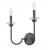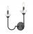 Cool matte black perfectly balances the elegant femininity of this transitional two-light wall sconce. Each light includes an interchangeable bobeche that refreshes the look with a choice of white metal or clear glass. Tall, J-shaped arms and a round wall plate complete the design, ensuring a bold silhouette in any setting.