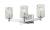A contemporary haven is bejeweled with glam as this exquisite three-light vanity light becomes a focal point highlighting a compact vanity. Crystal-like glass shades add an air of exclusivity to a fixture with a sleek Chrome finish metal mount and arms, and an air of high-class, upscale elegance.