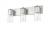 Tapering shades of clear glass assure bright, bold illumination from an industrial three-light vanity fixture. Perfect for your bath, it sets a refined, almost vintage tone with tubular bulbs tucked within tapering clear glass shades. A thick wall plate features a brushed nickel finish, offering stylish versatility in any bathroom setting.