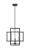 Sleek steel offers a minimalist aesthetic to this contemporary four-light pendant and presents a slim tesseract-inspired shape. Modernizing spacious transitional interior spaces like living rooms and bedrooms, this transitional pendant boasts a bold matte black finish that elevates the modern architectural aesthetic. Within this large contemporary four-light pendant is a candelabra style centerpiece, showcasing four exposed bulbs for an industrial utilitarian effect.
