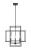 Sleek steel offers a minimalist aesthetic to this large contemporary four-light pendant and presents a sophisticated tesseract-inspired shape. Modernizing spacious transitional interior spaces like open concept living rooms and master bedroom retreats, this grand transitional pendant boasts a dramatic stark matte black finish that presents a modern architectural aesthetic and Frank Lloyd Wright-inspired flair. Within its oversized open and airy contemporary shade is four candelabras topped with exposed bulbs that lend a chic industrial feel.