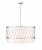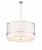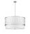 A lovely addition to open concept living rooms, spacious master bedrooms and dining rooms, this modern five-light pendant boasts a diamond shaped motif across the brushed nickel wire cage, creating a chic retro-inspired touch. A white fabric shade casts a serene and soothing glow that contrasts against the lustrous metallic cage and ceiling mount, adding to the dimension of the tiered round drum design.