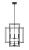 An oversized steel cage offers a grand minimalist aesthetic to this contemporary eight-light pendant, designed with an elegant geometric tesseract-inspired shape. Modernizing spacious transitional interiors like a two-story entryway foyer or an open concept living room with high ceilings, this substantial transitional pendant boasts a stark matte black finish that presents a modern architectural feel and Frank Lloyd Wright-inspired aesthetic. This generous contemporary pendant shade offers a breathable design, showcasing eight candelabras topped with exposed bulbs, pushing the cleverly designed architectural mood.