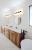 Bold contrasting finishes make the most of both Mid-Century Modern style and Art Deco attitude in a bathroom vanity light with a sense of sophistication and strong ambient lighting. This eight-light vanity light from the Artemis collection checks all the boxes for a compelling design and convenient uplighting and downlighting infused by matte opal glass open globes. Linear sensibility joins alluring curves in a dynamic matte black finish steel frame, wrapping up a host of decadent features.